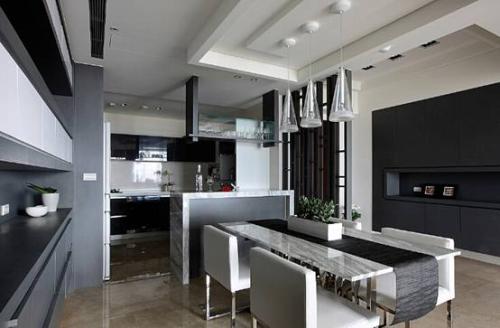 但考虑到国人的饮食习惯,专家建议这种设计还是慎用,尤其是喜欢在家享用美食的人士。如果真是就喜欢这种风格设计,不妨改良一下,可以把烹饪灶台“关闭”起来。四周用玻璃材质,既不挡视线,也可以阻隔油烟。